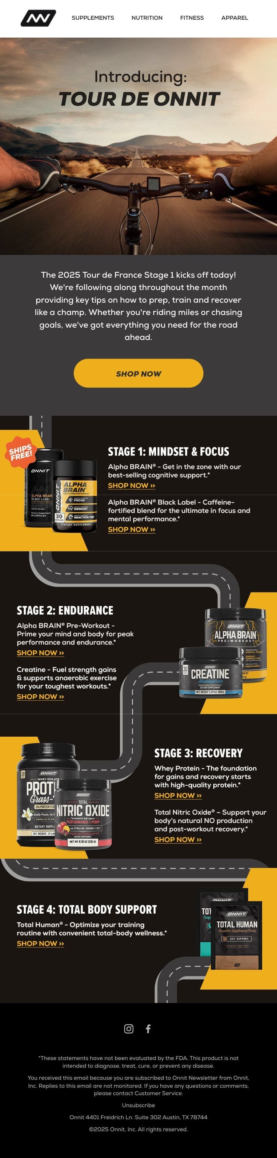 - Mini-Content Series: Since the race spans 11 regions, create a mini-series where you feature 1 region per newsletter, with one product inspired by that place. It keeps your content rich and evolving.