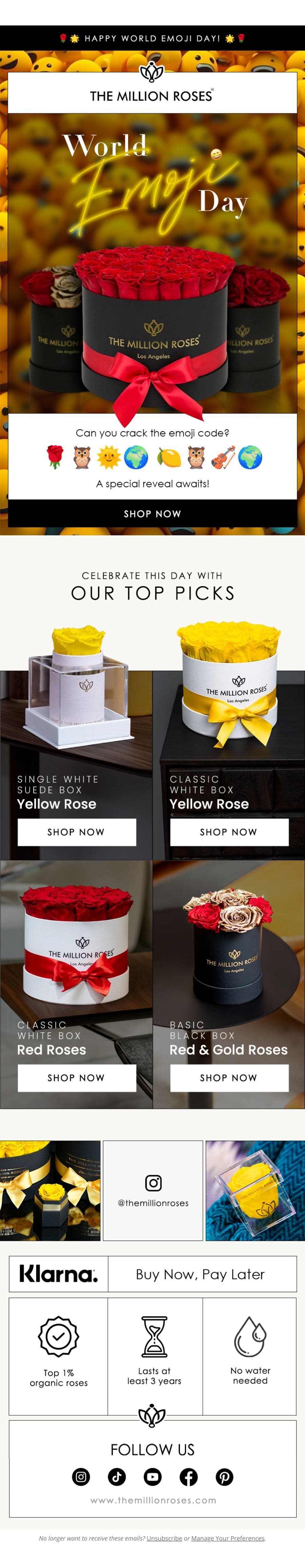 - Get the subscribers to crack the emoji code, and incentivize them with a special reveal that can be a discount or coupon code. Or a fun guide on how Gen Z is changing the emoji game for the Millennials.