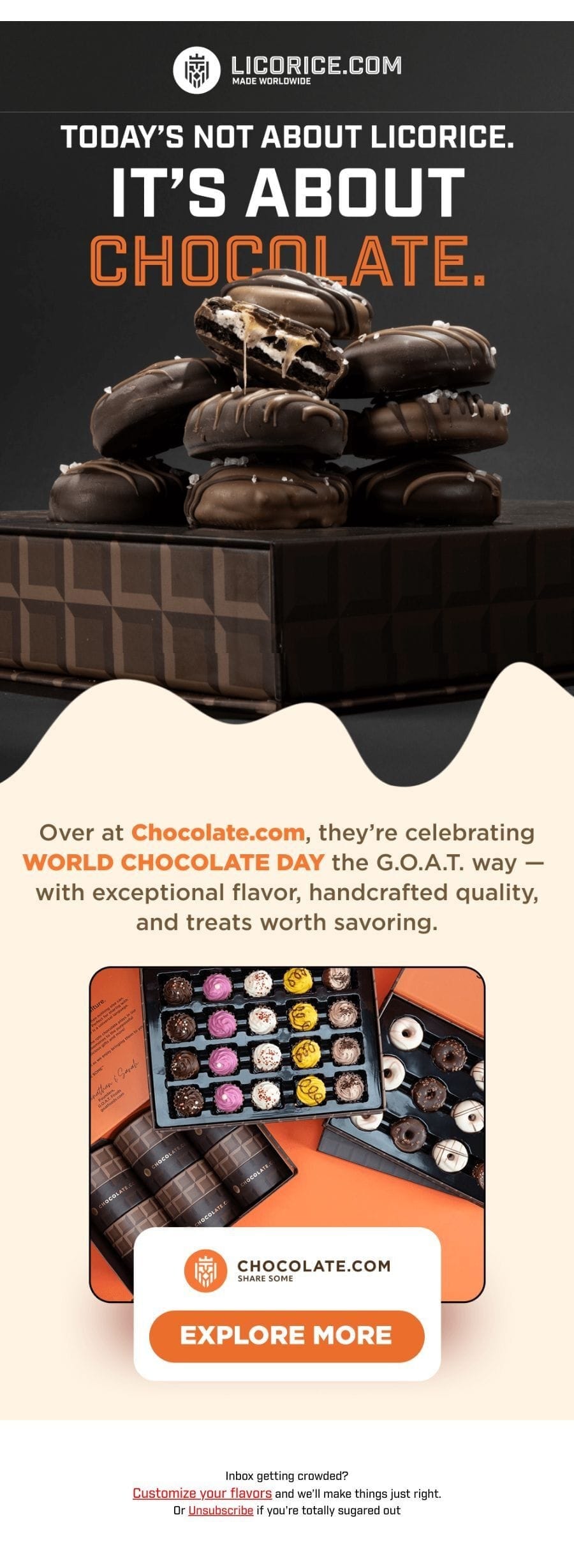 A fun, unofficial day celebrating chocolate in all forms. Who doesn’t love chocolate? Highlight relatable and universally loved aspects, even if your product isn’t chocolate; the theme adds a sweet twist to your messaging.