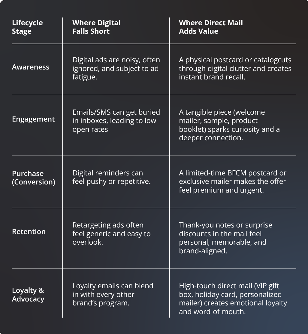 Customer Lifecycle: Digital Gaps vs. Direct Mail Value