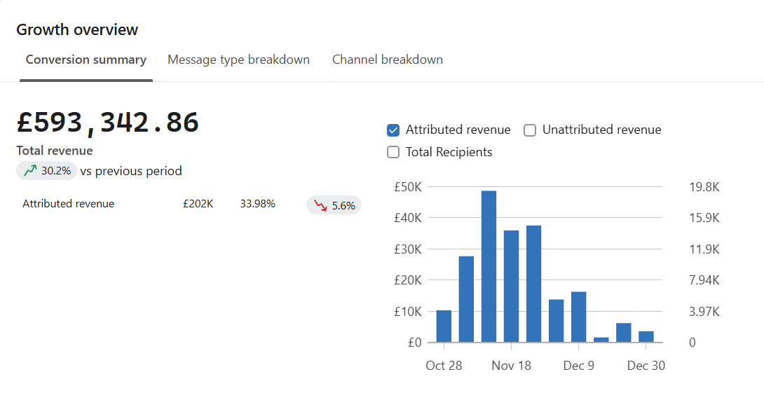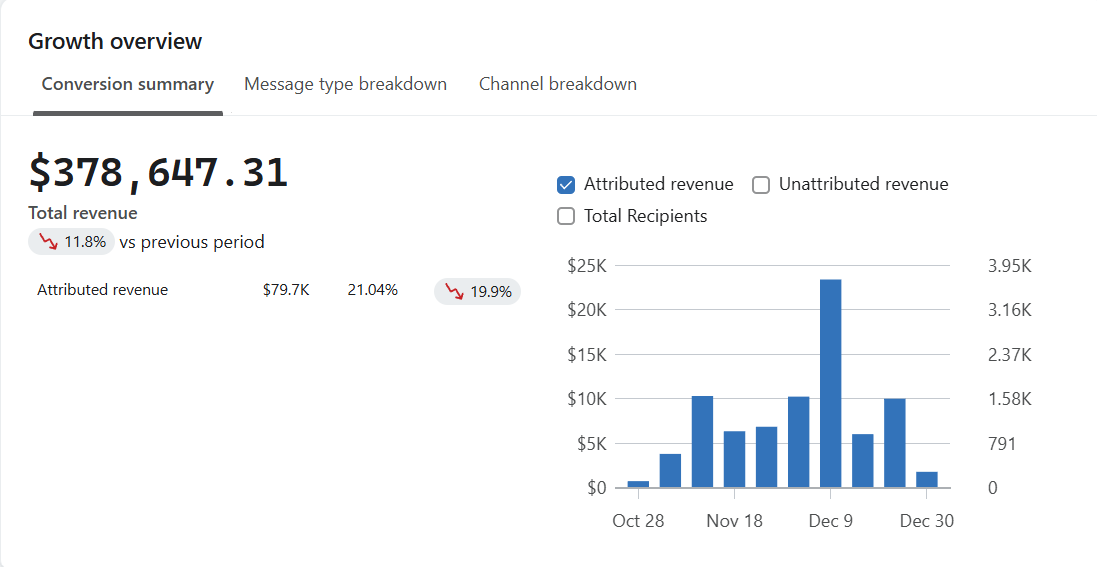 Notice how this motorcycle gear brand saw its biggest spike on December 9th, well after Cyber Monday wrapped. This proves that holiday shoppers are still active weeks later. If you go quiet after Cyber Week, you risk missing out on significant revenue opportunities.